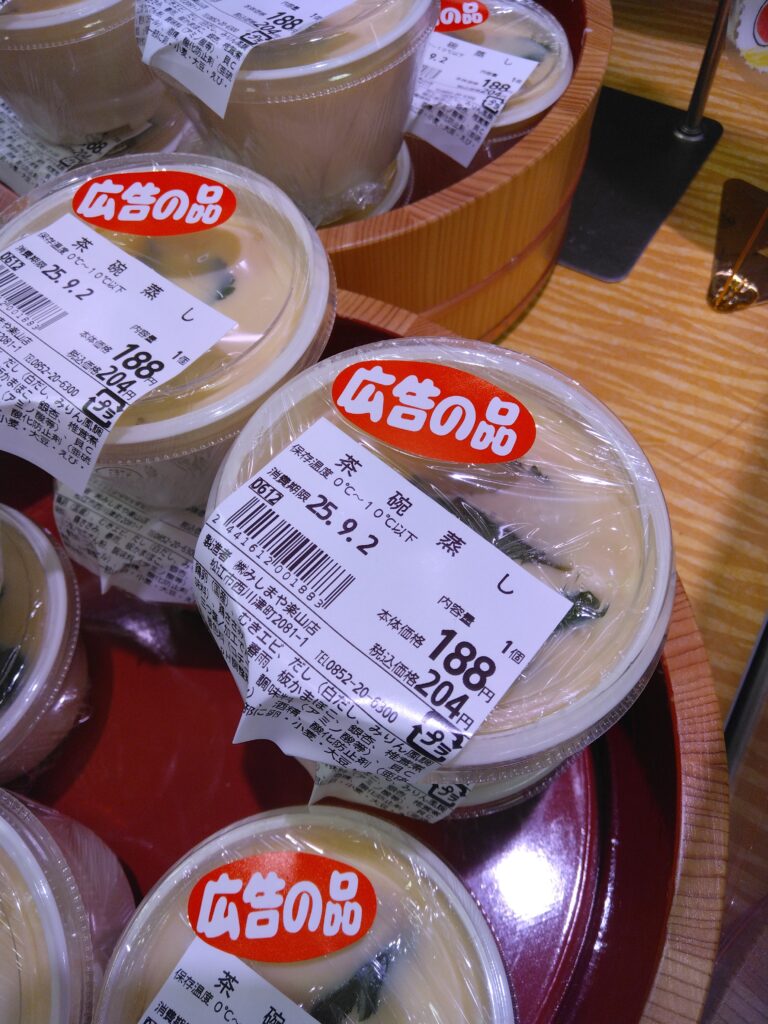 いつもありがとうございます。 さんぷくの名物のひとつ、茶碗蒸しがただいま広告の品でご提供しております。本日最終日です。 出汁香る、やさしい風味の茶碗蒸しです。 是非この機会にお買い求めくださいませ。 ご来店お待ちしております。