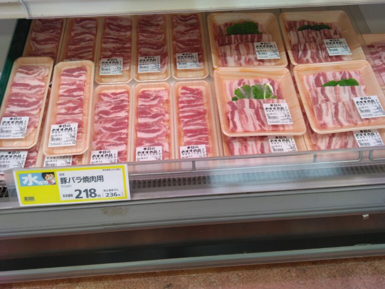 おはようございます!みしまや楽山店です。本日は豚バラ焼肉用がお買い得となっております。回鍋肉や豚キムチ、ホットプレートで焼肉はいかがでしょうか?食べ応えのある厚切り豚バラを是非みしまや楽山店にてお買い求め下さいませ!