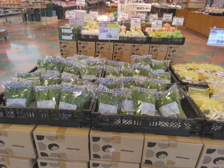 こんにちは楽山店です。本日のおすすめ野菜島根県産ほうれん草。お野菜が高い中少しだけのご奉仕価格で販売中です。お浸し、和え物、炒め物など地物で栄養ある野菜はいかがでしょうか。是非ご賞味して下さいませ。ご来店お待ちしております。