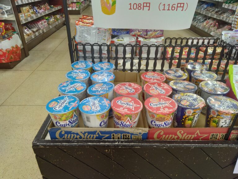 今日のおすすめは、サッポロ一番カップ麺です。1個108円と大変お安くなっております。小腹が空いた時にいかがでしょうか。ぜひお買い求めくださいませ。