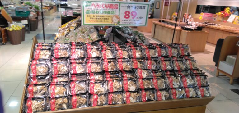 こんにちは、田和山店農産部門です。本日のおすすめは舞茸食べきりパックです!天ぷらや炒め物にいかがでしょうか。ぜひお買い求めくださいませ。