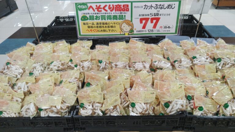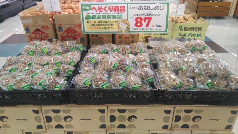 こんにちは!みしまや田和山店の農産部門です。今日のおすすめはぶなしめじです!ぜひご利用くださいませ。