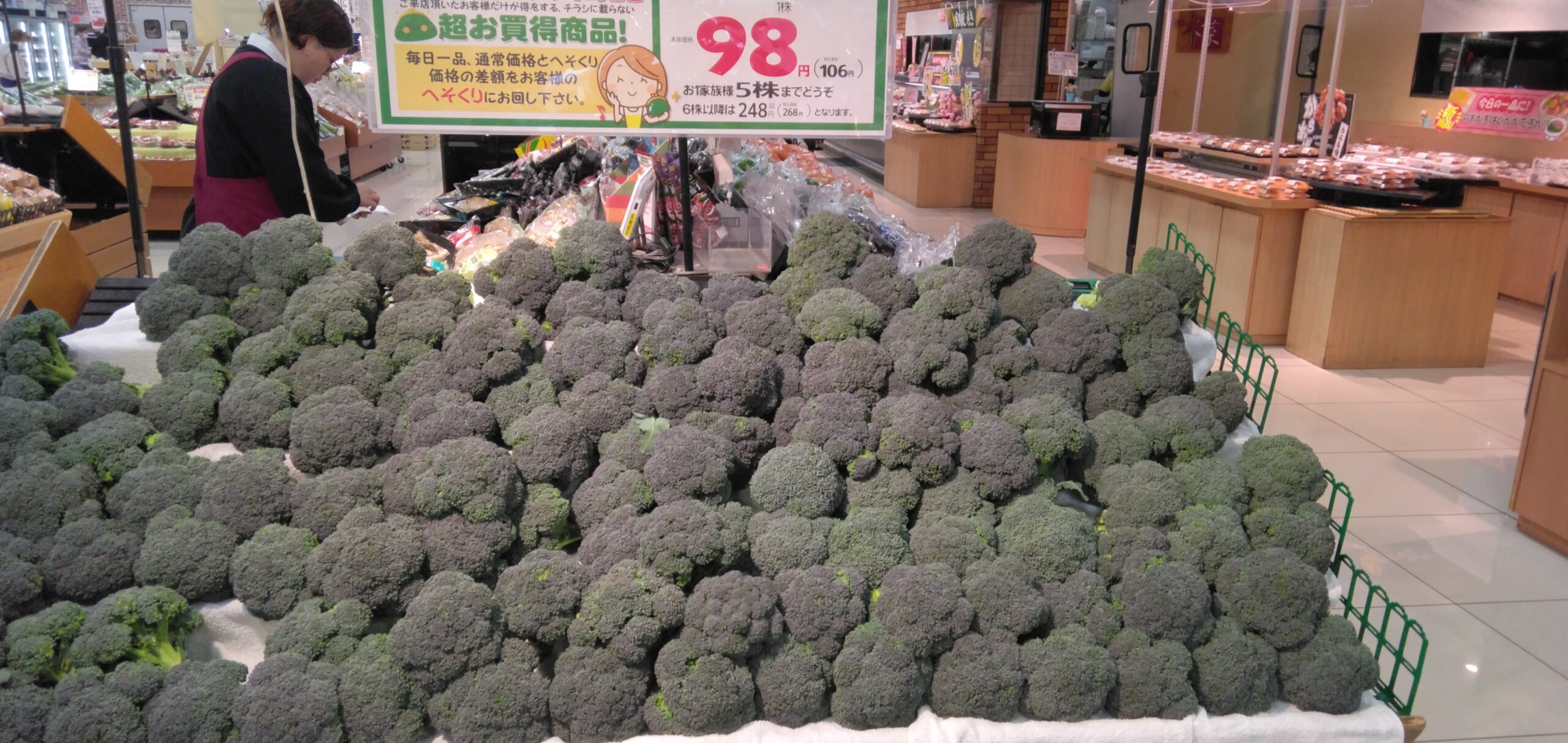 今日のおすすめ商品はブロッコリーです。 温野菜にしたり、シチューやグラタンに入れたり、余ったブロッコリーは冷凍保存してお弁当の彩りに使ってみたりしてみたりしませんか? このお安い機会に是非お買い求め下さいませ。