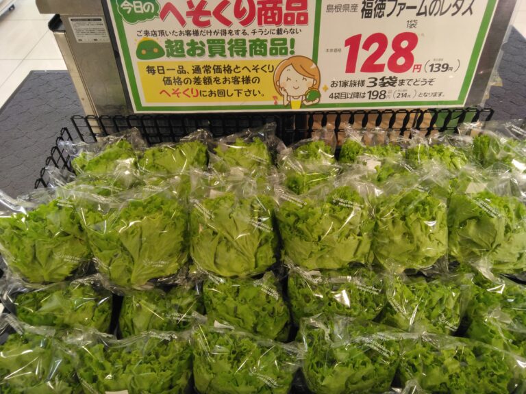 本日のおすすめは福徳ファームのレタスです!地元三刀屋産の大人気レタスです!ぜひお買い求め下さいませ!